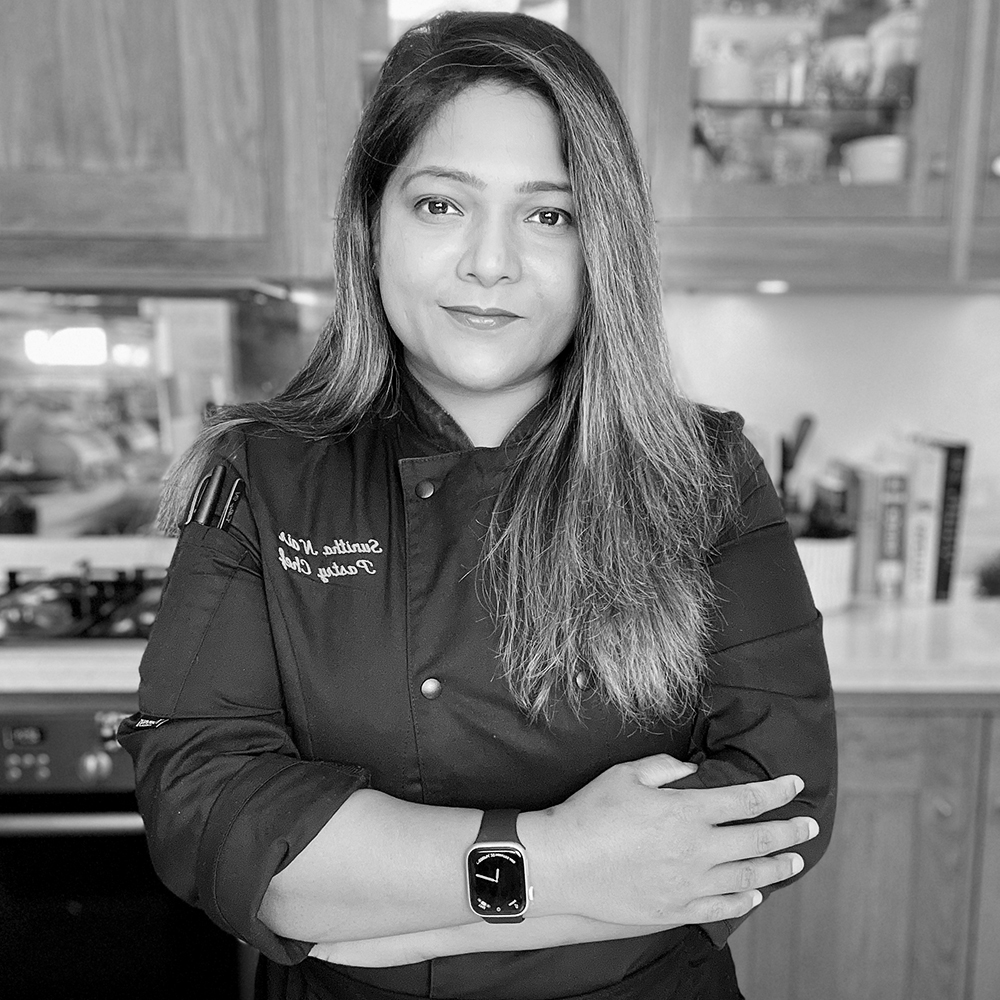 Chef Sunitha Nair is a Le Cordon Bleu–trained pastry chef specialising in modern French dessert craft. She refined her technique in some of London’s most celebrated Michelin-starred and large-scale French pastry kitchens, developing a style defined by precision, restraint, and textural balance. Her work focuses on contemporary plated desserts rooted in classical French methodology and elevated through minimal, sensory-driven composition.